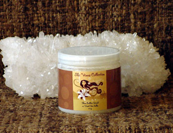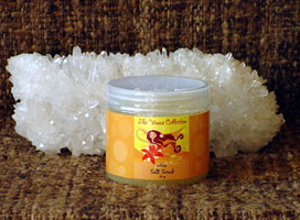 with fine sea salts, organic jojoba, safflower and soy oils. |