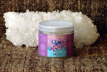 with fine sea salts, organic jojoba, safflower and soy oils.
